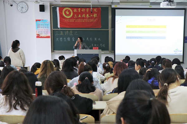 10月21日,开元平台于八号教学楼203教室举办以“大学生宿舍人际关系漫谈”为主题的三五讲座。此次讲座由蔡婧老师主讲。教科院160余名学生到场聆听讲座。