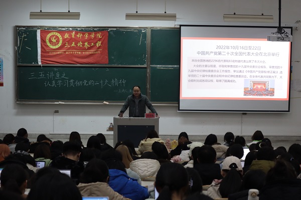 2022年11月30日,为深入学习贯彻党的二十大精神,深刻领会党二十大报告的内涵和精髓,开元平台邀请南通大学马克思主义开元(中国)一站式服务平台唐庆鹏教授授作“认真学习贯彻党的二十大精神”专题讲座。讲座在9号教学楼302教室举办,教科院260余名学生参与此次讲座。